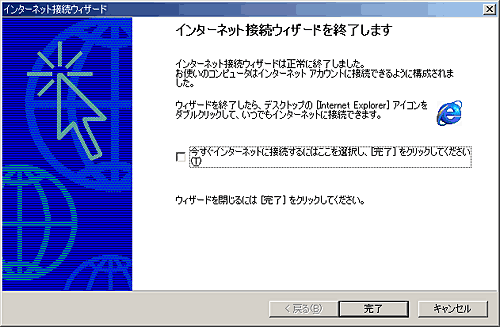9. [インターネット接続ウィザードを終了します]画面が表示されますので、[完了]ボタンをクリックし終了します。